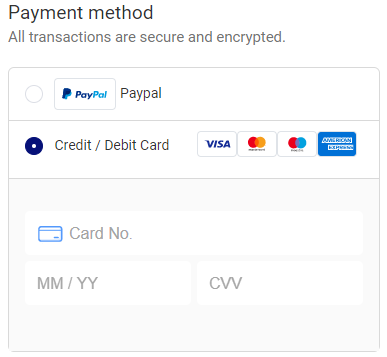 If you want to check out with a Credit and Debit Card, just enter your * Card No, * Expiration Date, and * CVV.